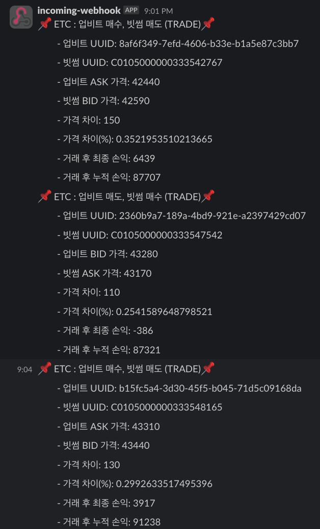 현재는 거래소간 차익거래 매매를 중단한 상태이다. 잠시 중단 중인 이유는 더 큰 수익 모델을 찾아서 매매를 하고 있는 중이라, 선택과 집중을 위해 중단한 상태이다. (사실 시드가 부족해서...)